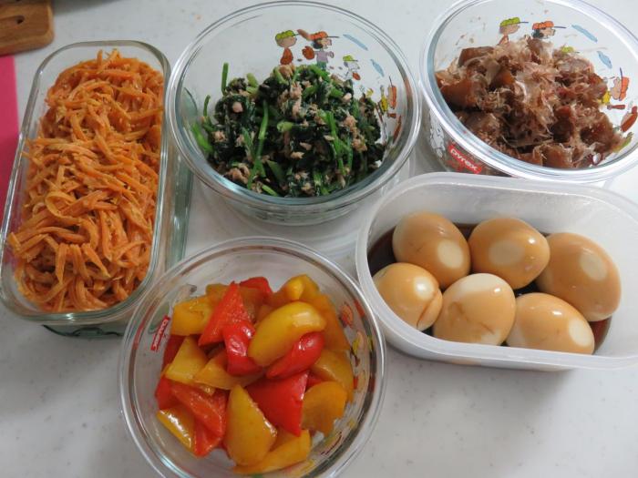 パプリカカレー味☆こんにゃく炒め☆煮卵☆