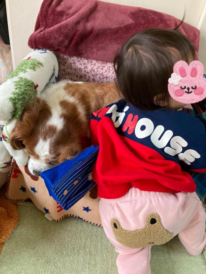 最近はマリちゃん、孫が近づいてもあまり逃げなくなりました^^