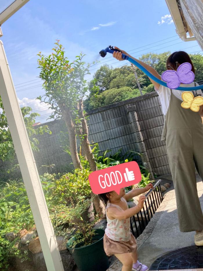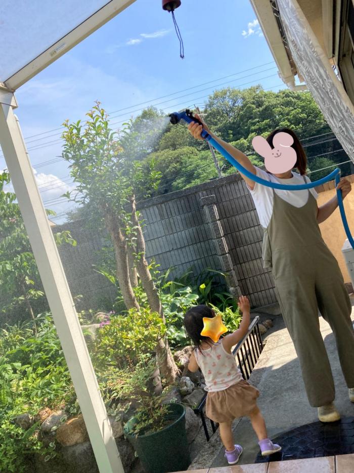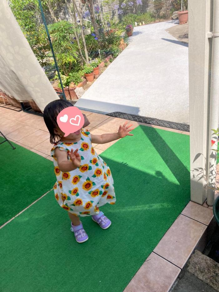 冷房の入った部屋でゆっくりしたいのは大人だけ(;’∀’)孫ちゃんはすぐに庭に出たがる(ーー;
