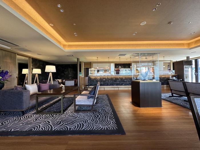 部屋に入れるまで、ラウンジでお仕事ですって!