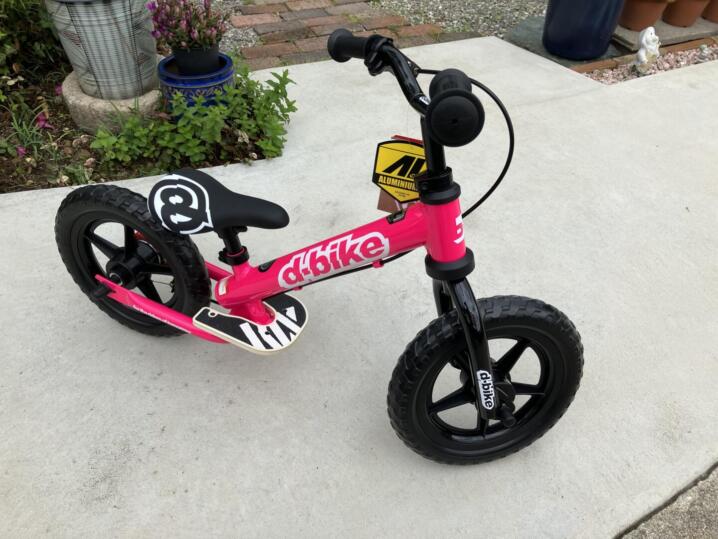 ストライダーにしようと初めは考えていたのですが、安全運転を身に着ける為にはやはりブレーキがあったほうがいいかな?スタンドがないと置くとききっと困るはず!漕ぐのはまだ難しいからペダルは要らない等々随分考えて探しました。