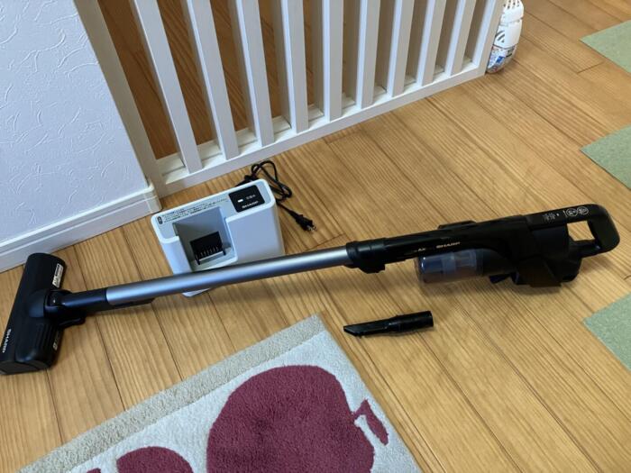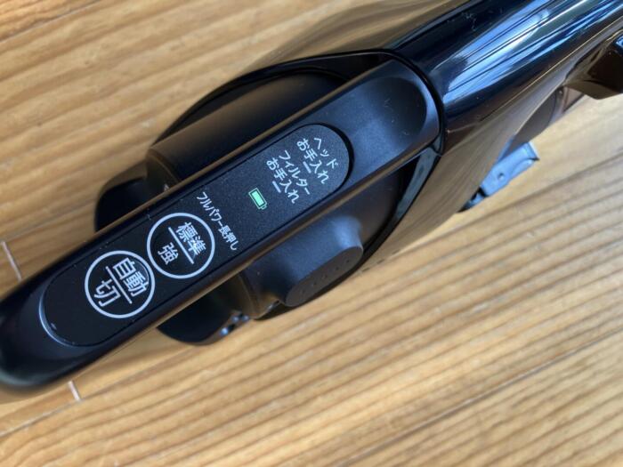 前の日立のも軽さが売りでしたが、こちらの方が更に軽くてパイプも細くて、大丈夫かな?でも、よく吸います。フローリングとカーペットを感知して自動で吸引力を切り替えてくれますΣ(゚Д゚)感動しながらスイスイ掃除していたら・・・えっ!?もう充電切れ???緑のランプが点滅し始めたので焦りながら終えました(^▽^;)