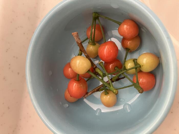犬友さんではないんですが、マリちゃんを可愛がって下さるおばあさん^^お二人とお話していたら、、、その方が育てておられるサクランボ、一枝下さいました\(^o^)/まいう~