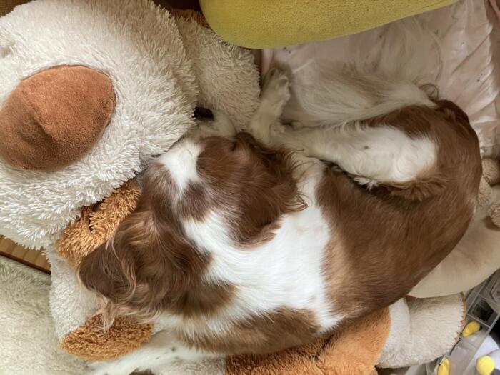 この犬のぬいぐるみがお気に入り^^