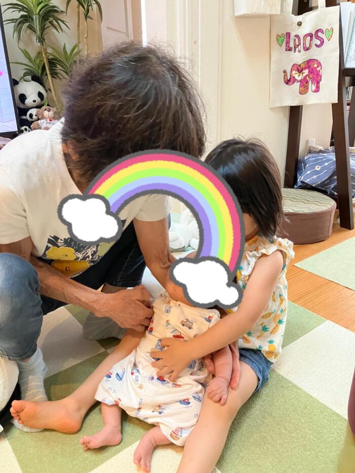 ○○ちゃんはママと○○○ちゃんと3人でお風呂に入ってご機嫌♬
