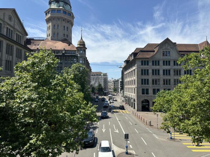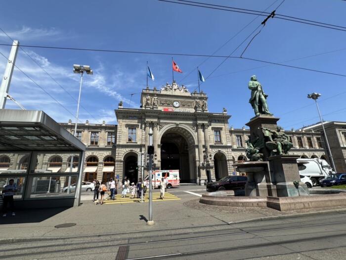 スイス最大の鉄道駅。国内の列車と隣接のドイツ、イタリア、フランス、オーストリアとの間で発着する国際列車のターミナルとなっており、一日に2900本以上の列車が出入りする。