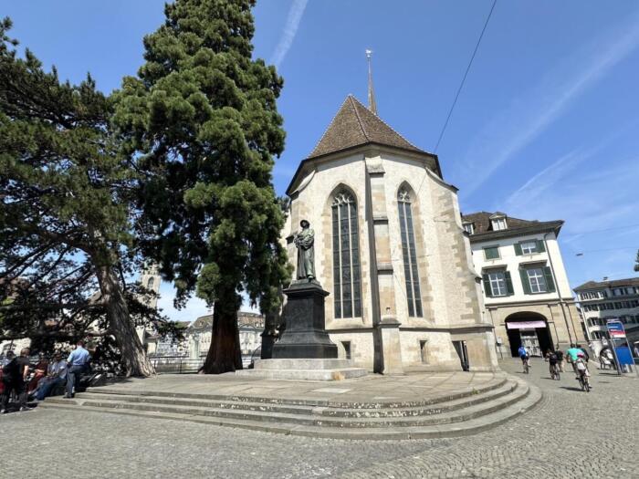 マルク シャガールとアウグスト ジャコメッティによる美しいステンドグラスで知られるチューリッヒの有名な教会。