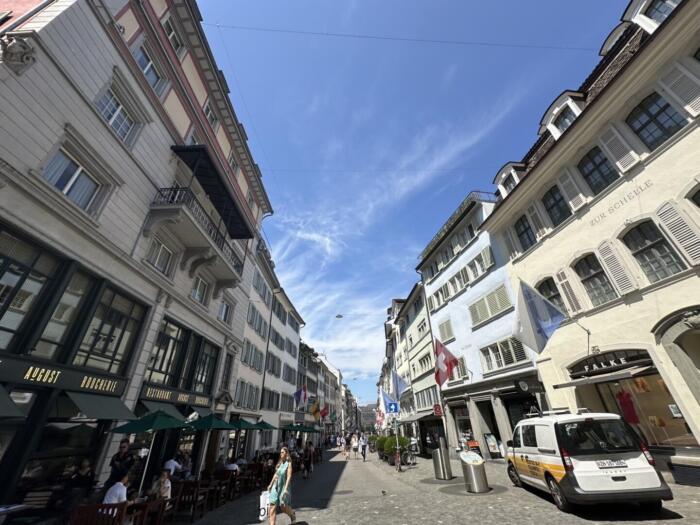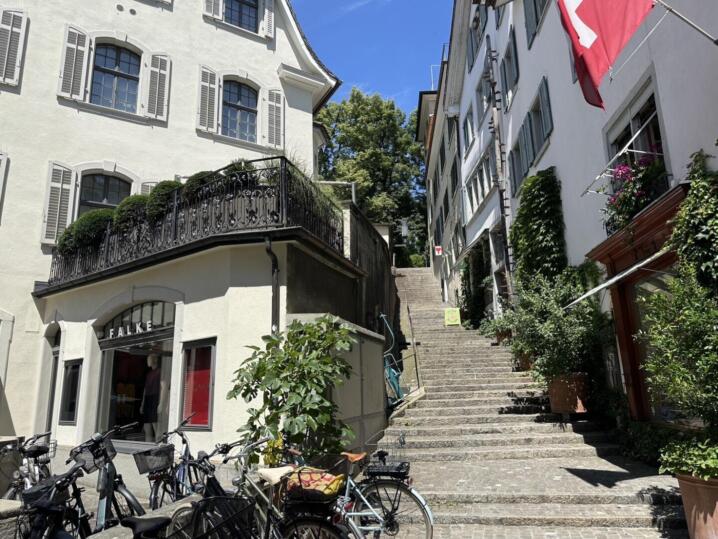 聖ペーター教会のすぐ近くにあるチューリッヒ市民の憩いの場。夕暮れ時の美しい街並みを眺めるのにおすすめ。