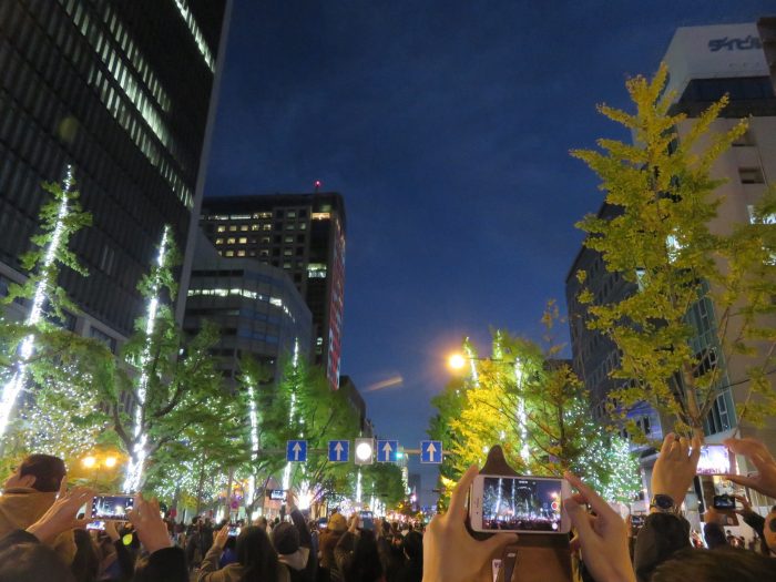 一夜限り歩行者に解放され、車道からイルミネーションを楽しむことが出来ました♪