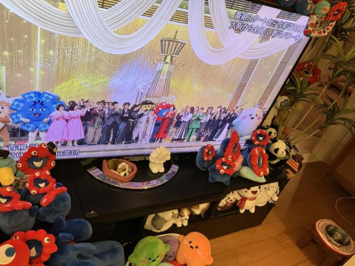 ○○ちゃんが来ても、、、万博キャラで遊んでま~す^^