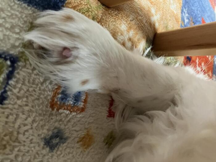 出来物から膿も出なくなり、小さなイボ状の物になりました。つぶれたり大きくならなければ大丈夫のようなので、様子見となりました!