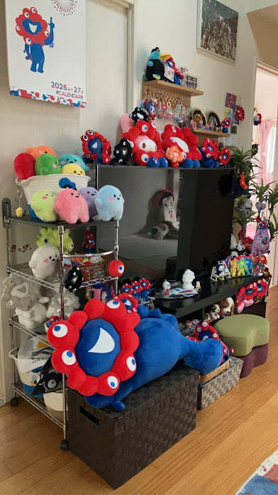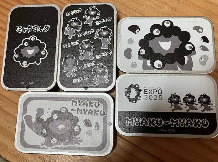 新しく買った棚に万博グッズ飾ってみました~~~♬