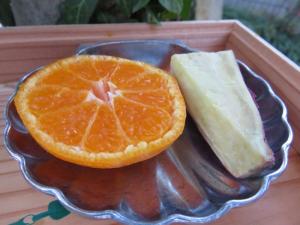 メジロには、チンしたさつまいもとみかんを用意しました^^