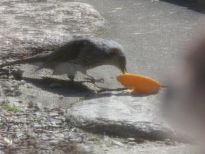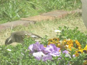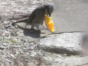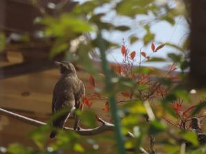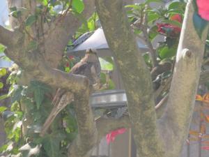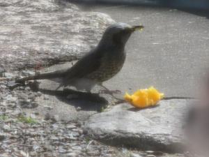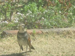 お次は、ツグミちゃん♪庭に降り立ちました~