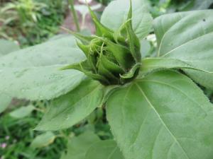 その横で、もうひまわりの蕾が・・・