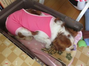 入ると、お気に入りのクレートでぐったり(--;)