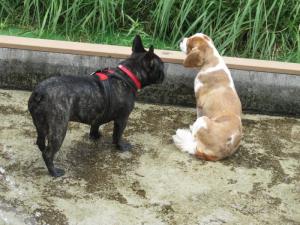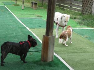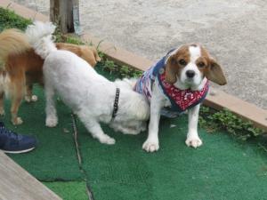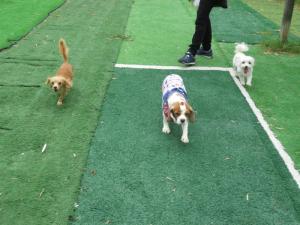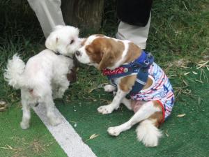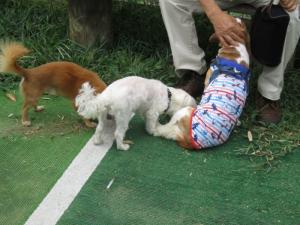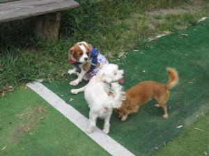 小型犬が2頭遊んでいました♪