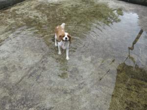 お姉さんに水をかけてもらって上機嫌!!