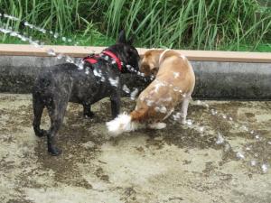 2頭のわんちゃんと、水遊びをさせてくれることに☆