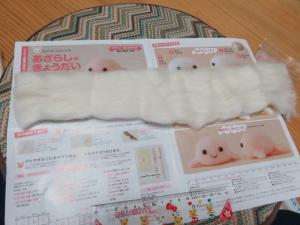 目をつけて、口を刺繍糸で縫いつけます。