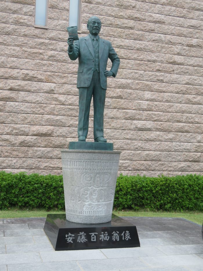 安藤百福 NHK連続テレビ小説『まんぷく』 福子の夫となる立花萬平のモデル 安藤百福は、大阪池田市の自宅裏庭に建てた 小さな小屋で「チキンラーメン」を生み出し その後さまざまな知恵と革新的な発想を結集した 「カップヌード…