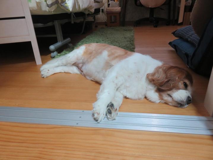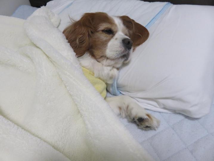 つかれたワン(ーー) 「こんばんはここでねることにします♪」 えっ?どこだって?? お兄さんのベッドだワン♬ (^o^)ノ < おやすみー って!Σ(゚Д゚) なんでそんなに疲れてるの⁇ その…